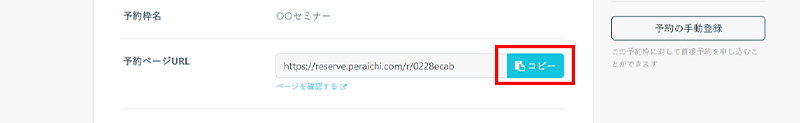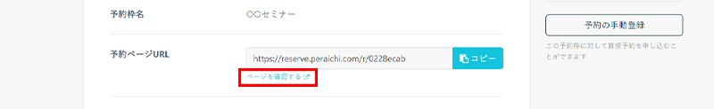 ▲予約ページがきちんとできているか気になる方はURL直下の「ページを確認する」を開いてみてください。URLの中身=お客様が実際に見るページを確認することができます