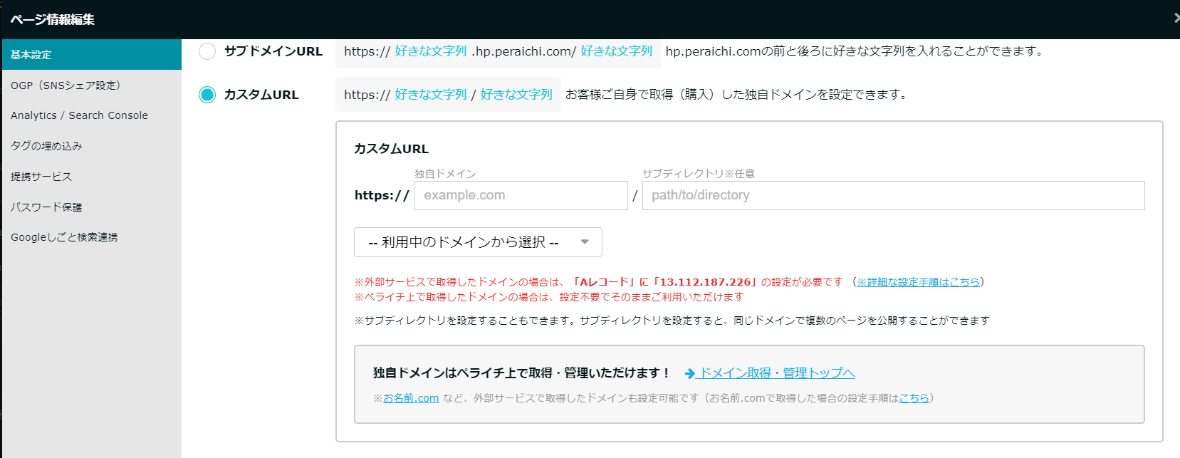 ペライチにおける独自ドメインの設定方法