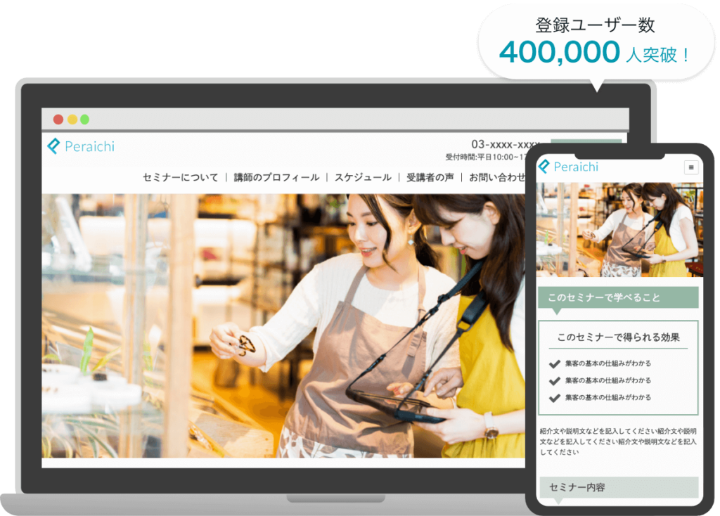ペライチはHTMLの知識がなくても予約サイトやネットショップを開設でき、はじめてビジネスを行おうと考えている方にぴったりです。