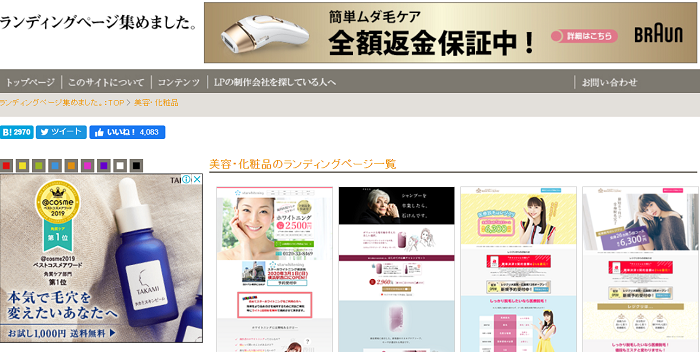 次の項では、化粧品のランディングページを制作する際に参考になるおすすめのサイトをご紹介します。