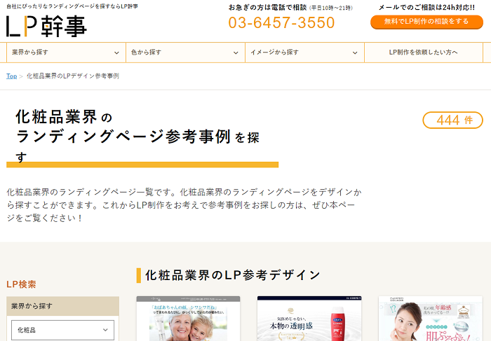 | 化粧品関連LP掲載数 | 「化粧品」カテゴリー:444件 |