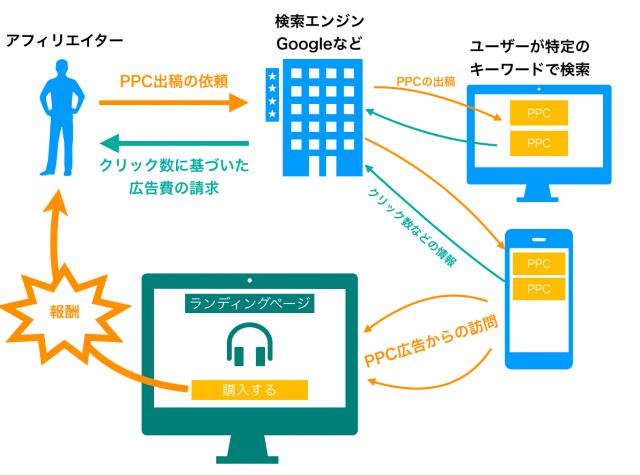 PPCとは "Pay Per Click" の略で、サイト・ブログアフィリエイトと比べると少し仕組みが複雑です。
