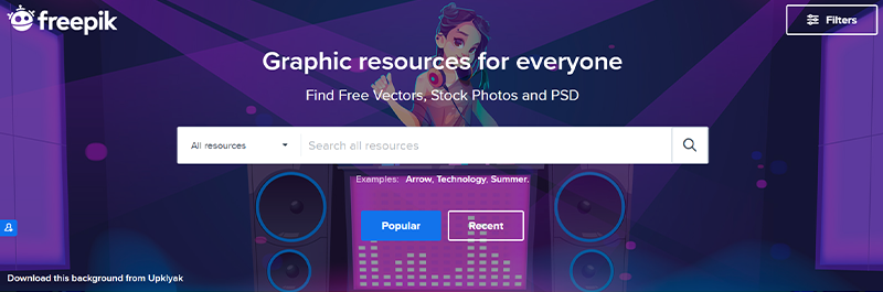 ベクター素材のイラストをダウンロードできます。また、写真やflaticon(freepikが運営するフリーアイコン素材サイト)のアイコンなどをダウンロードすることもできます。