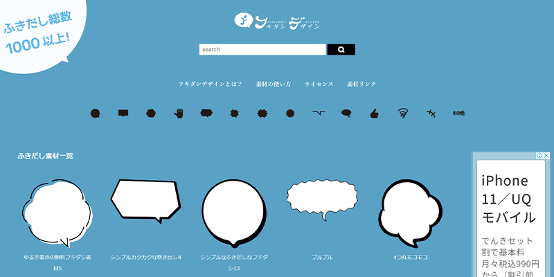 吹き出し専門のイラスト素材サイトです。シンプルな吹き出しやモコモコした吹き出し、ドット柄の吹き出しなど、60種類を超える様々な吹き出しが揃っています。