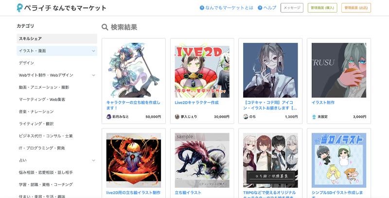 現役のプロデザイナーが副業や趣味でスキルを販売しているので安くハイクオリティのイラストを作る事ができます。有料だから、商用利用はもちろん、オリジナルのイラストを作ることができるので、他とは差をつけたい時に重宝できるでしょう。また、絞り込み検索機能も充実しており簡単にお気に入りのイラストデザイナーを発見できます。