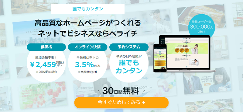 【30日間ビジネスプランが無料!ペライチに登録する】