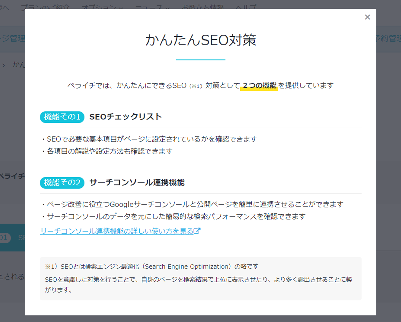 ▲チェックリストに沿って設定をしていくだけで簡単にSEO対策が完了。サーチコンソール連携機能も!