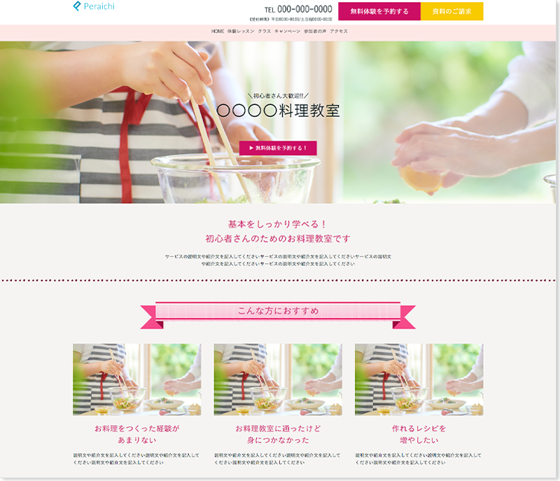 今回はペライチが提供している280種以上のテンプレートの中から習い事・資格スクール向きのテンプレートを厳選してご紹介!