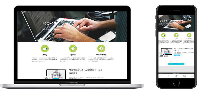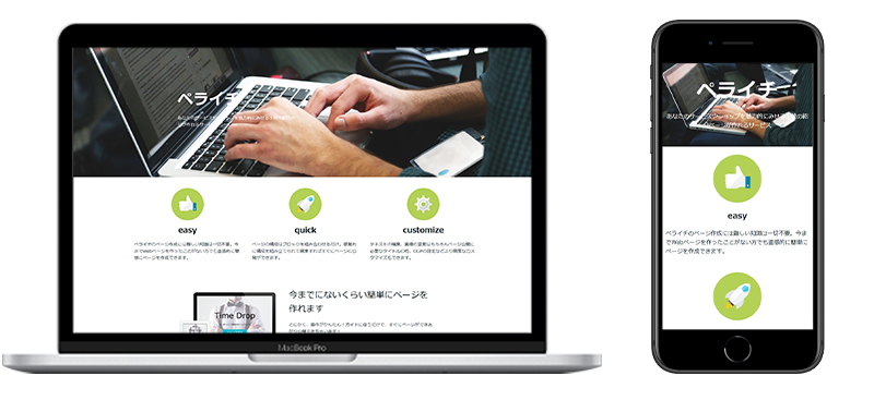 ペライチでは全ブロック・全テンプレートが自動でスマホ最適化される作りになっているので、基本のスマホ最適化はこれでOKです!