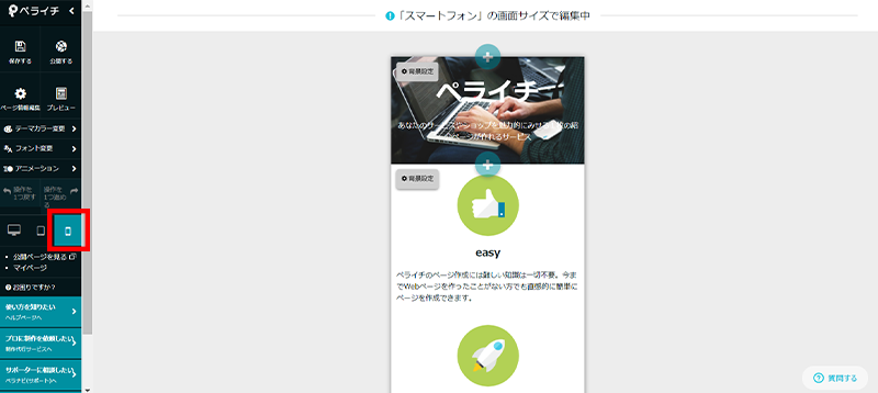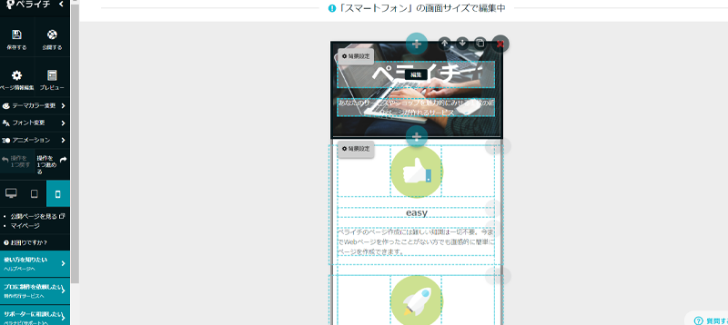 また、上記はパソコン画面の表示ですが、ペライチはスマホからも編集ができます。