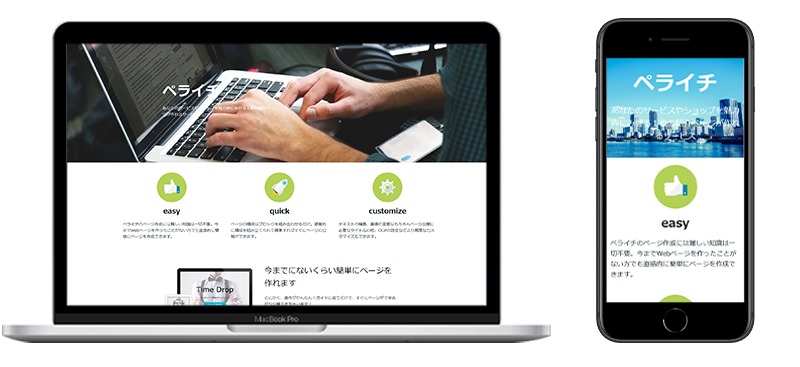 レスポンシブデザインなど、1からやろうとすると大変なスマホ最適化ですが、ペライチなどのホームページ作成ツールを使えば簡単にスマホ対応サイトは作ることができます。