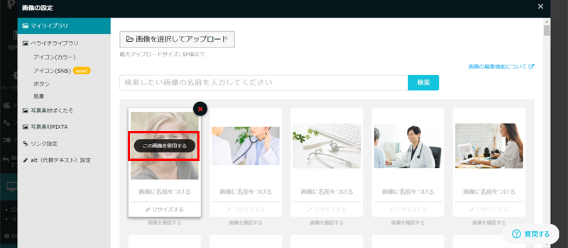 顔アイコンにカーソルを合わせると「編集」という文字が出てくるのでそのままクリック。画像の設定画面(マイライブラリ)が出てくるので任意の画像を選択しましょう。
