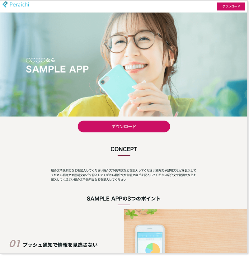 幅広いサービス紹介に使える「アプリ紹介用のテンプレート」