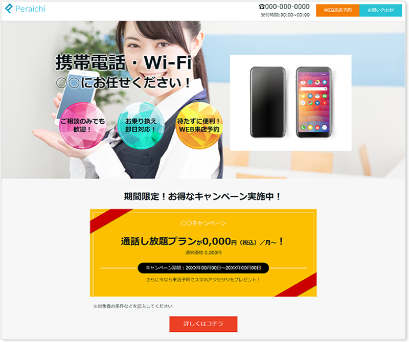 商品紹介から来店予約まで!「携帯ショップ用のテンプレート」