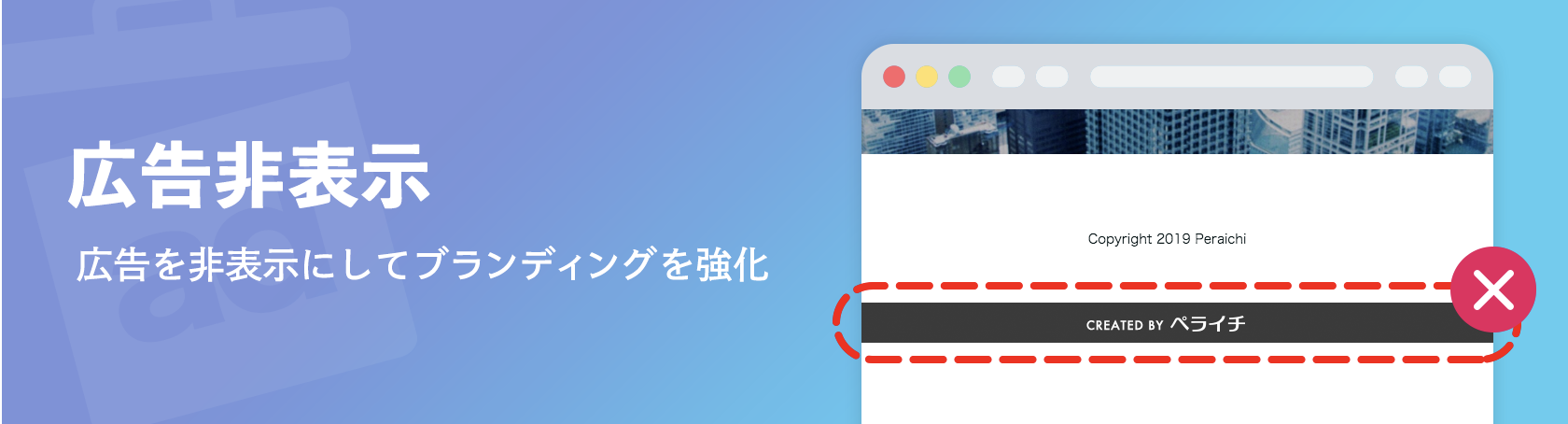 作成ページ内に表示されていたペライチの広告表示が、ライトプラン以上ご契約の全ユーザー様のページで自動非表示になりました。