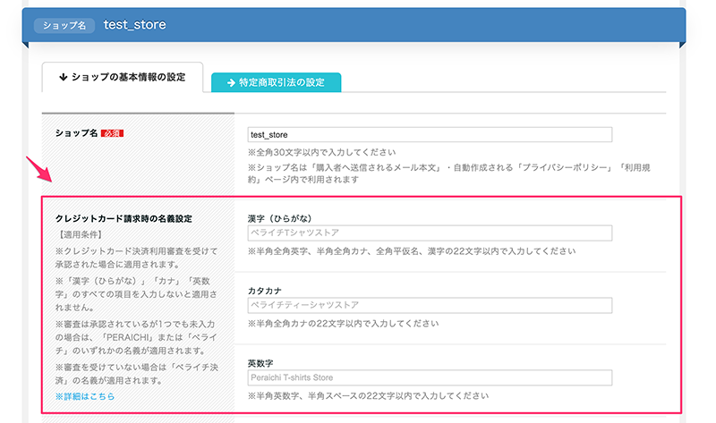 2.購入者へ請求時の名義が「ペライチ決済」から「ショップ名」に