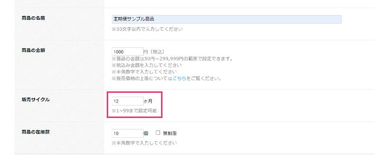 これまで定期便の販売サイクルは1~6ヵ月までしか設定できませんでしたが、最大99ヵ月まで設定できるようになりました。