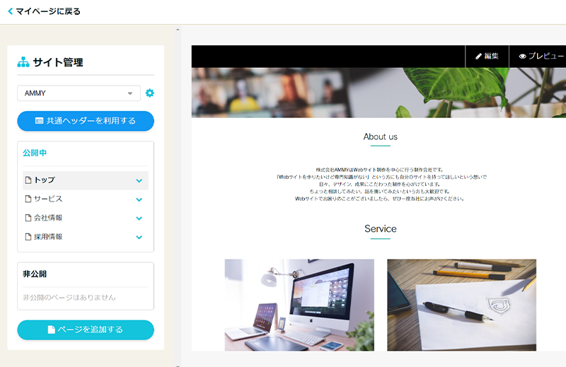 本機能を使えば、サイト内に複数のページを持った本格ホームページがカンタンに作れます♪