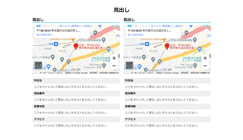 また、ボタンが2つ並んだお問い合わせブロックと2列の地図ブロックも新たに追加されました!