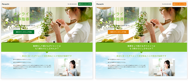 ボタンの色だけを変えてみた例。(左)類似色の緑/(右)反対色に近いオレンジ
