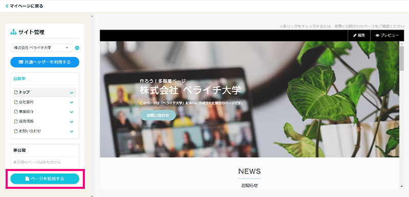 2021年8月末、ペライチで本格階層ホームページが簡単に作れる新機能「サイト管理機能」がリリースされました!