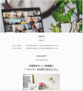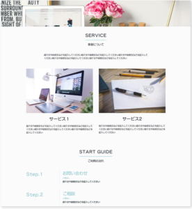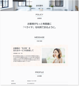 今回はペライチテンプレートを作る際の構成を参考に「コーポレートサイトのおすすめコンテンツ」をご用意しましたので、こちらを例にホームページ作成方法をお伝えしていきます^^