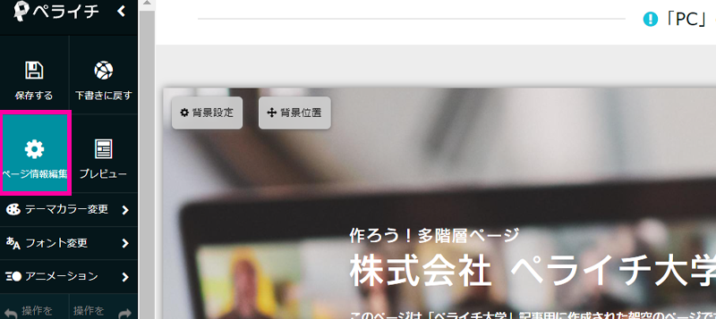 1.説明文を書きたいページの編集画面で「ページ情報編集」をクリック
