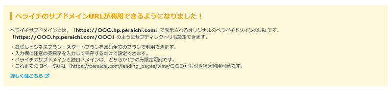 特に独自ドメイン(ペライチドメイン以外)を使用している・使用を考えている場合は直接関係する内容が多いので要チェックです。