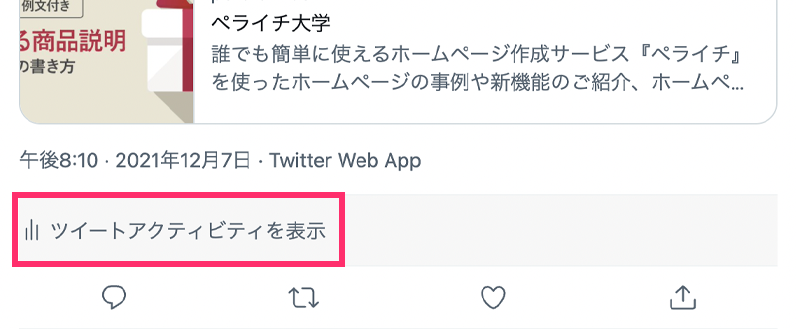 ▲インプレッション数は該当ツイートの「ツイートアクティビティ」から見ることができます