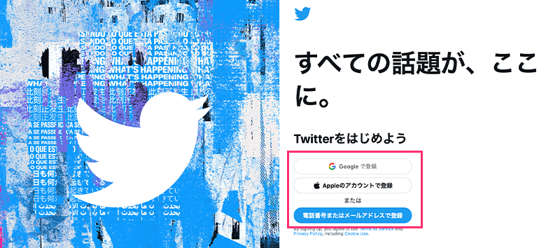 Twitterアカウントは公式サイト、またはスマホアプリをダウンロードし、アカウント登録することで作ることができます。