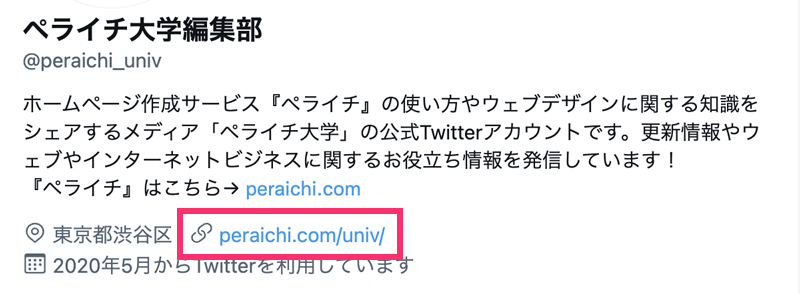 TwitterのプロフィールにはURLの専用項目があるので、コーポレートサイトやLPなど、集客をしたいWebページのURLを入れておきましょう。