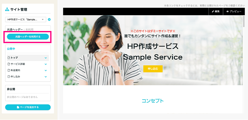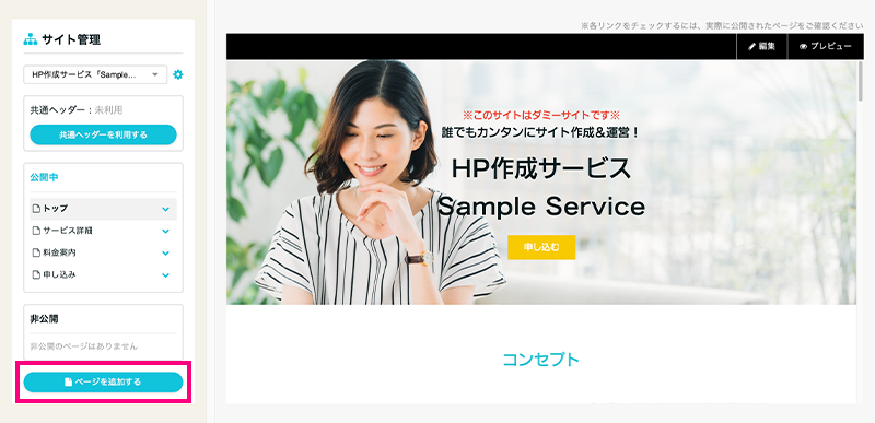 今回はサイト管理機能を使ったサービスサイトの作り方をご紹介しました。