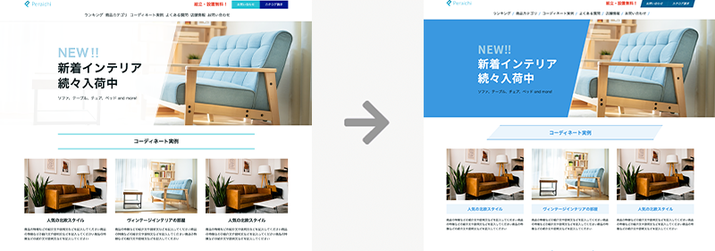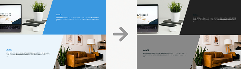 色やフォントを変えるように、ワンクリックでサイトデザインをガラッと変えることができます。