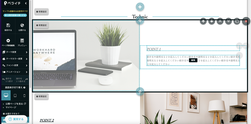 画像やテキストを編集してサイトを作ります。