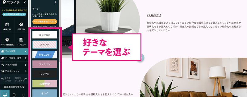 幅広いテイストのテーマをご用意しているのでぜひお気に入りのテーマを使ってみてください♪