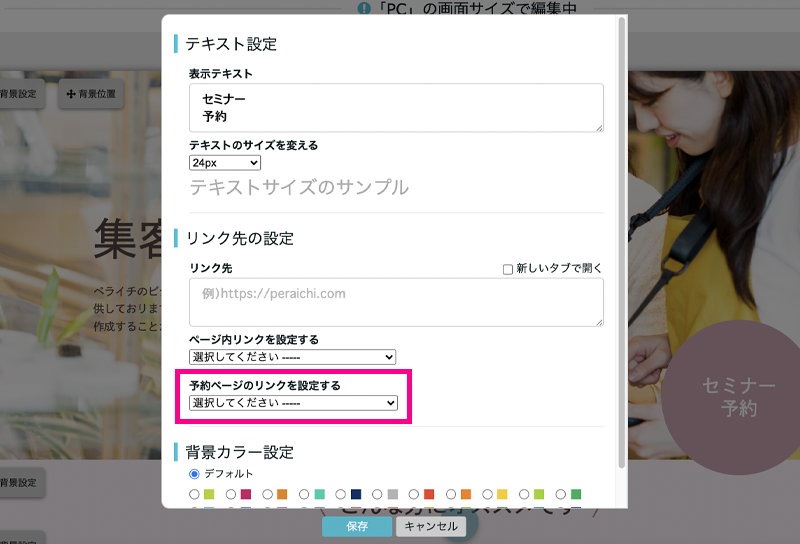 ボタンブロックの設定画面で予約枠のURLが選択できるようになりました!