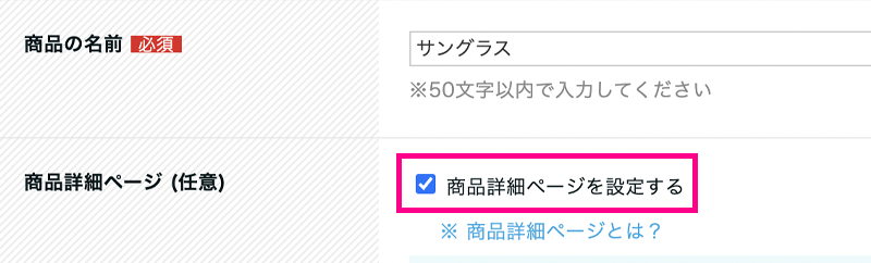 ▲商品詳細ページを設定するにチェックを入れると設定できます