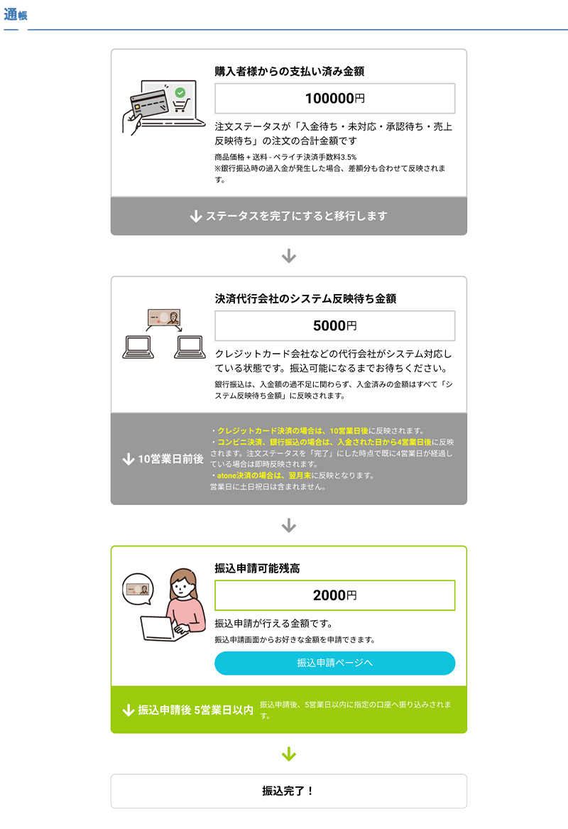 決済ダッシュボードの通帳項目のデザインがリニューアル。