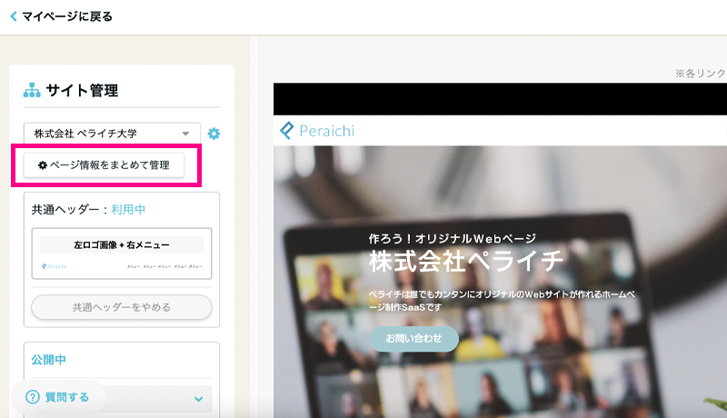 サイト管理機能に「ページ情報をまとめて管理」ボタンが登場!