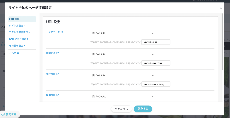 各ページごとに行う必要があったURLなどのページ情報を一括で設定することができるようになりました^^