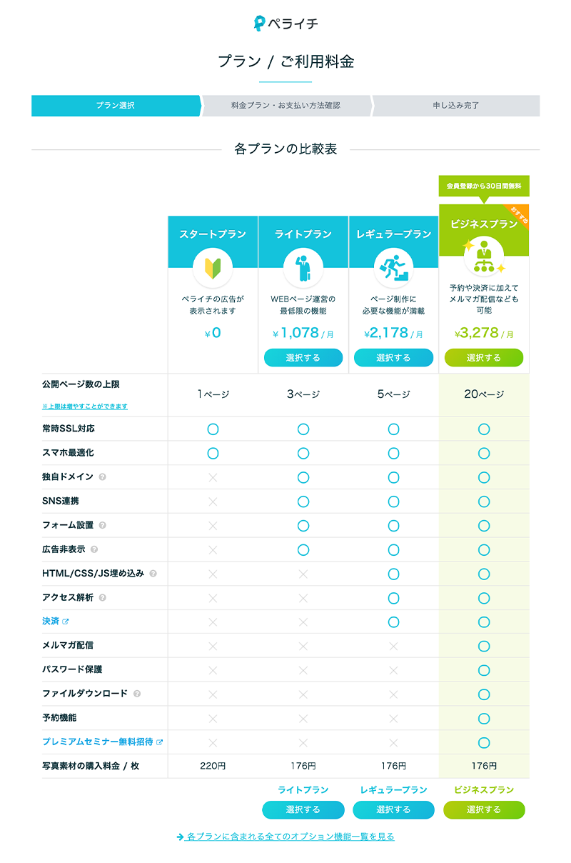 【30日間ビジネスプランが無料!ペライチに登録する】