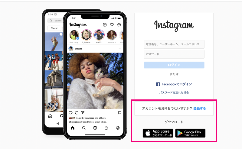 インスタのアカウントはInstagramトップページ、もしくはスマートフォンのアプリから登録ができます。