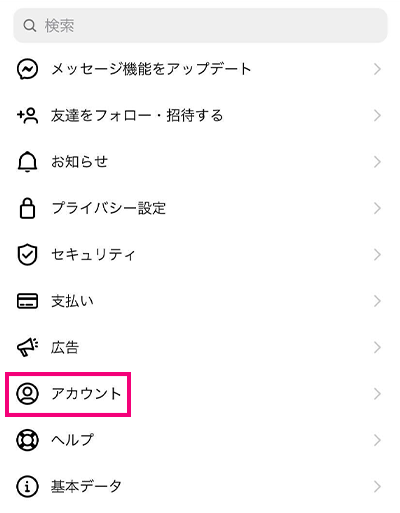 2.「アカウント」を開く