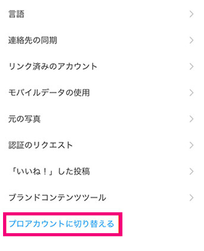 新規で作ったアカウントでも、元々持っていた個人アカウントでもプロアカウントに切り替えることができます。