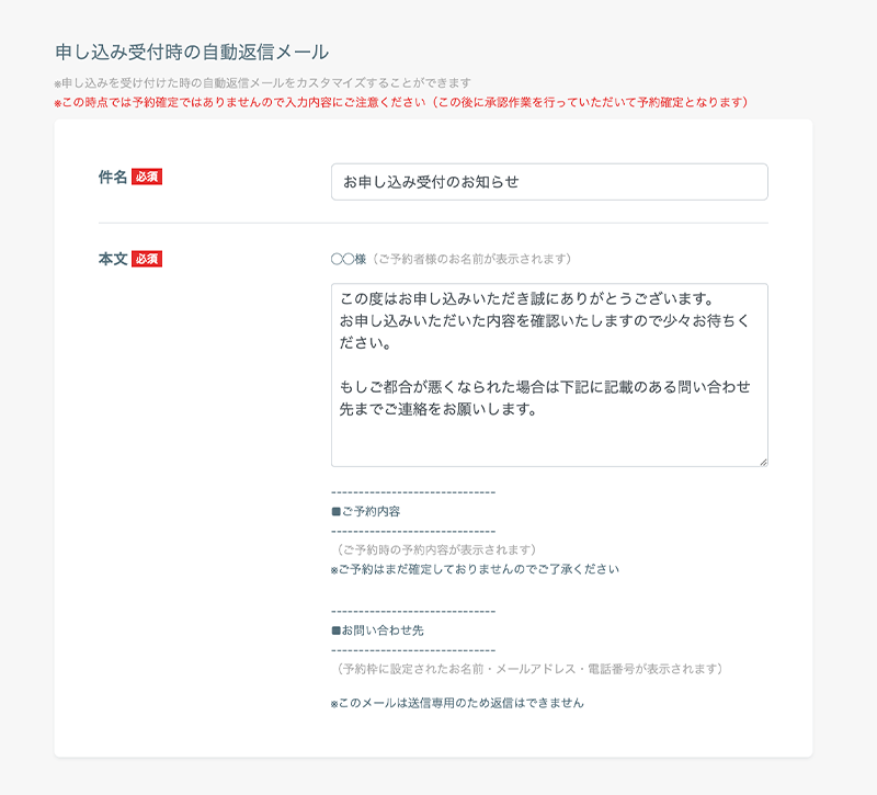 【予約の自動返信メール】受付完了のお知らせ