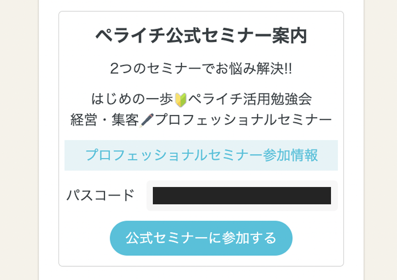 プロフェッショナルセミナーへの参加に必要なパスコードも表示されているので、参加される方はこちらからコードをコピーしてお申し込みください♪