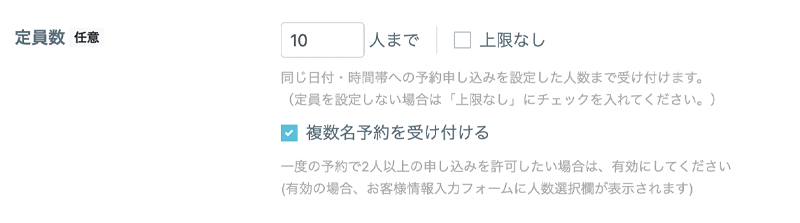飲食店や宿泊施設など、1つの予約に対して人数制限・指定が必要な予約にピッタリの機能です♪