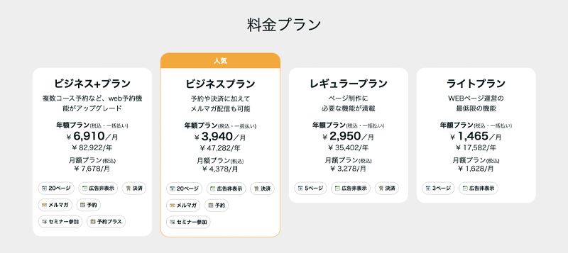 こちらはコース予約などが追加できる「予約プラスオプション」を含む全機能が使えるスペシャルなプランとなっております。