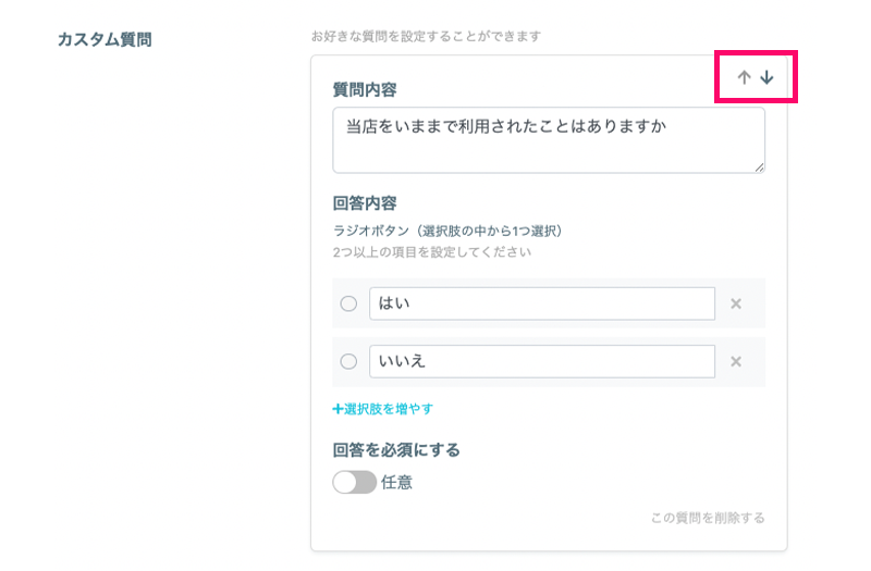 予約フォーム項目の「カスタム質問」の順番入れ替えが簡単にできるようになりました!