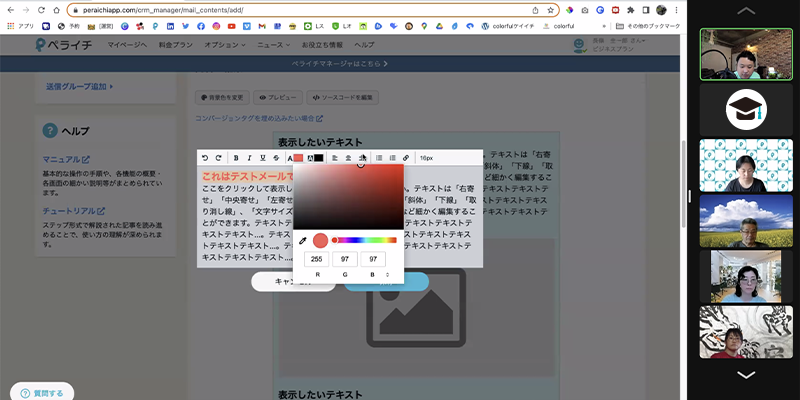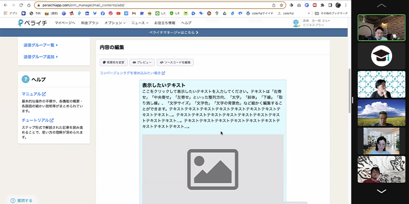 ペライチに関する機能や設定など、Web会議ツールを使用し1対1でお話ししながら解消できます。